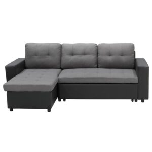 Sarantino Corner Faux Leather Sofa Bed Couch with Chaise – Black