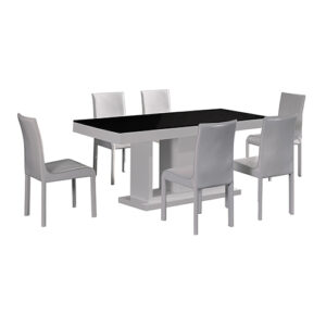 7 Pieces Dining Suite Dining Table & 6X White Chairs in Rectangular Shape High Glossy MDF Wooden Base Combination of Black & White Colour