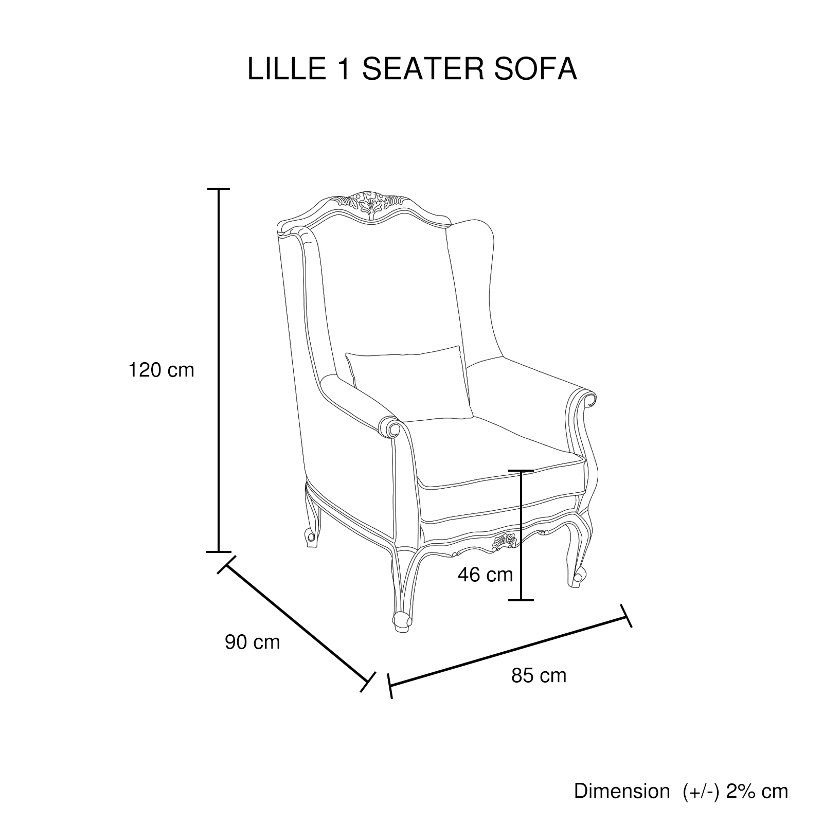 Seat Height (cm): Wing Chair-46, 2 Seater-45, 3 Seater-45