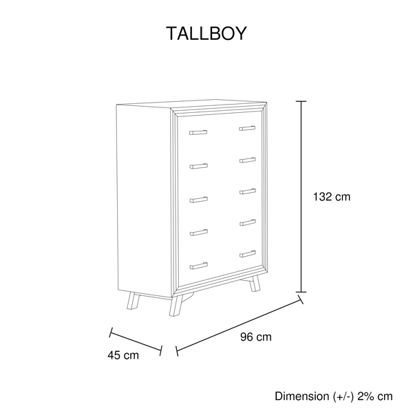 These bed room unit comes with abundance of storage for stowing your accessories. This Bedside Table has two spacious drawers and Tallboy has five spacious drawers where you can neatly arrange your staffs and thus keep your home clean and tidy. Metal Handles are used in the drawers to let you pull out the drawers easily and smoothly.