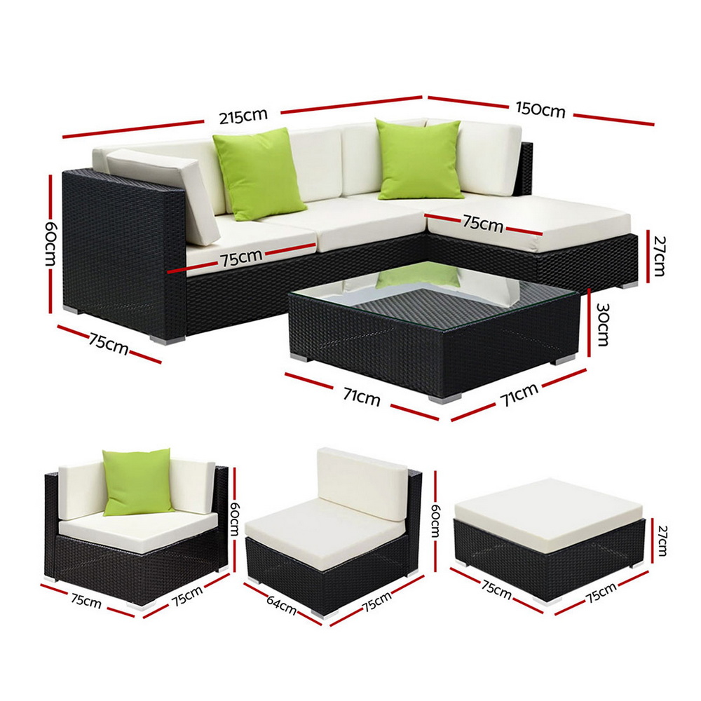 Gardeon 5-Piece Outdoor Sofa Set Wicker Couch Lounge Setting Cover